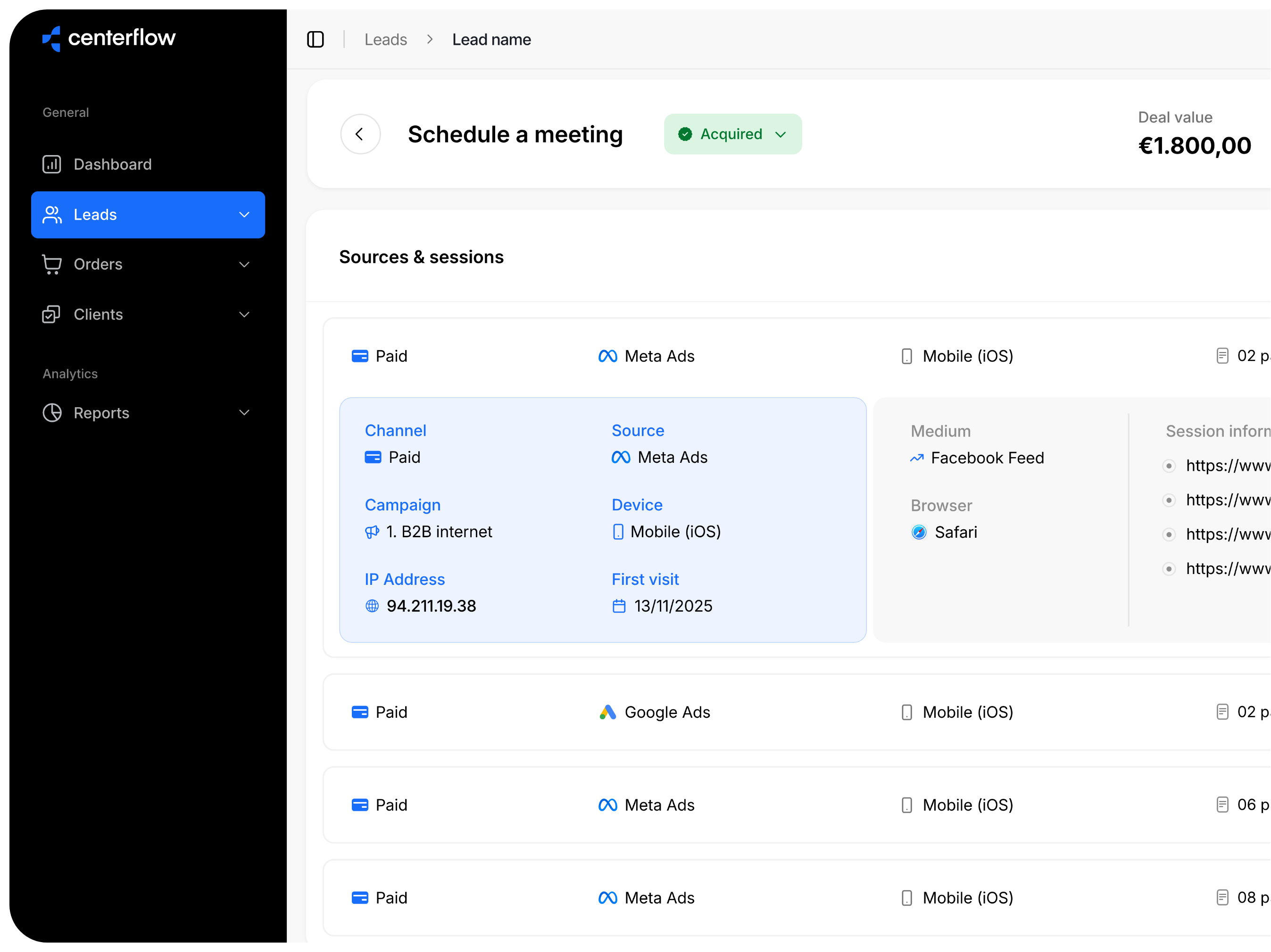Ja. Centerflow toont niet alleen hoeveel leads een campagne genereert, maar ook welke leads klanten worden en hoeveel waard zijn. Dit helpt je stoppen met gissen en begin met investeren in campagnes die echt omzet opleveren.
