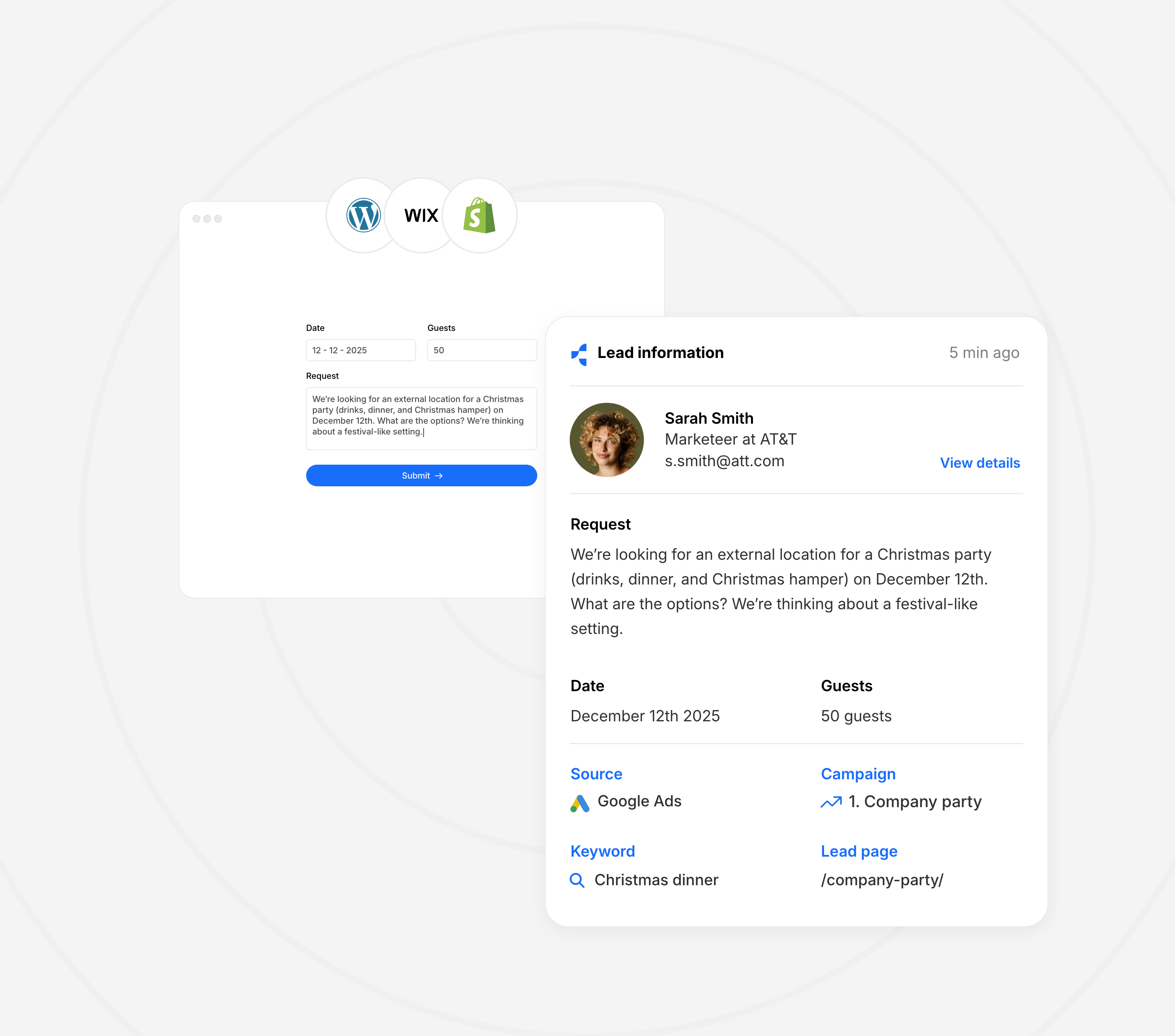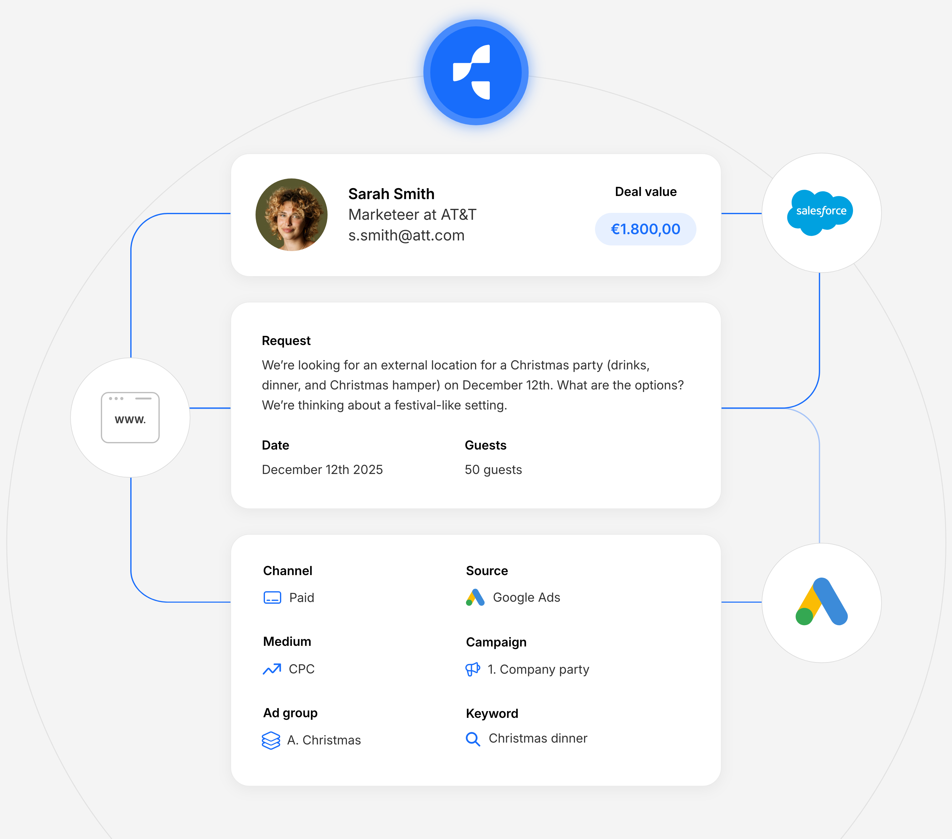 Wanneer een lead via Google Ads converteert en weken later via e-mail opnieuw een offerte aanvraagt, verliezen de meeste systemen de attributie. Centerflow koppelt terugkerende leads aan de oorspronkelijke bron, zodat de juiste campagnes de juiste omzet toegewezen krijgen.